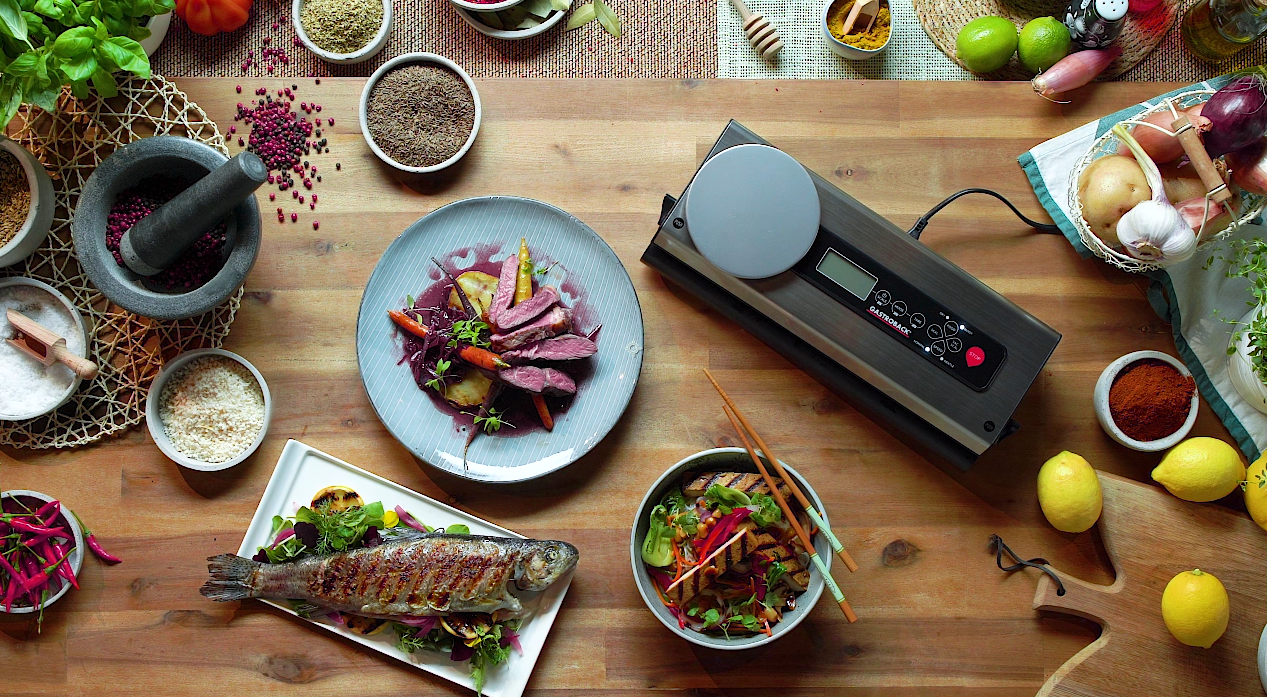 - Комбінування декількох пристроїв в одному: вакууматор Gastroback Design Vacuum Sealer Advanced Scale з вбудованими електронними вагами до 2 кг.