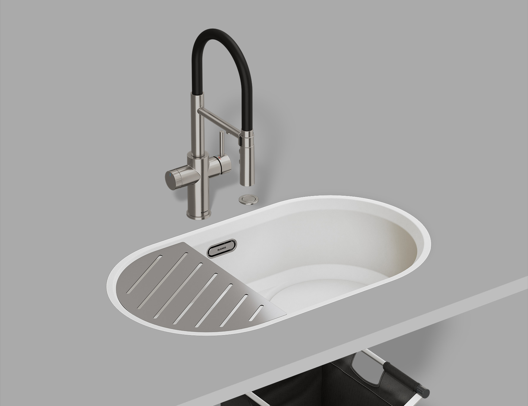 Мийка BLANCO OVALON та змішувач BLANCO LUNEOO-S створені як цілісний дует, де дизайн і функціональність від самого початку розроблялись разом. Їх об’єднує не лише стилістика, а й точне співвідношення форм, пропорцій і сценаріїв використання: висота та радіус виливу змішувача відповідають геометрії чаші, а розташування елементів підпорядковане згідно з логікою щоденних дій — миття, наповнення, ополіскування.